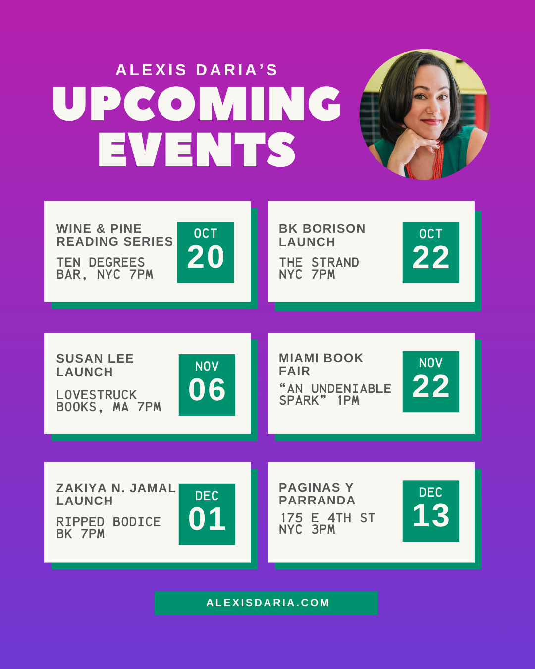 Please sign up for my newsletter to stay up to date about upcoming events.